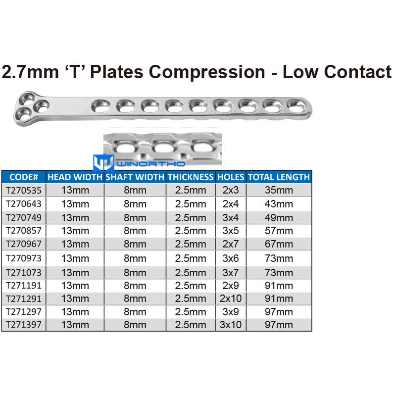 2.7mm ‘T’ Plates Compression - Low Contact pet vet animal veterinary orthopedic instruments